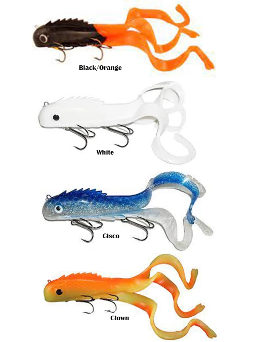 Designed to the perfect length, precise weight, and balance. Three tail design. Can be straight retrieved, pulled, twitched, or jigged. (2) 6/0 Premium Black Trident Treble hooks.
