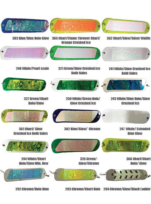The Opti Tackle Inticer Flasher is available in an 8″ length, and made in the USA! It has a heavy duty #6 stainless steel ball bearing swivel that prevents line twisting. It can be trolled from 1.0 mph to 3.3 mph. Also features a double fin design, which provides a unique rotating action and more action at the bait. Lastly, the flasher has a heavy duty corkscrew, terminal tackle and welded stainless steel rings.
