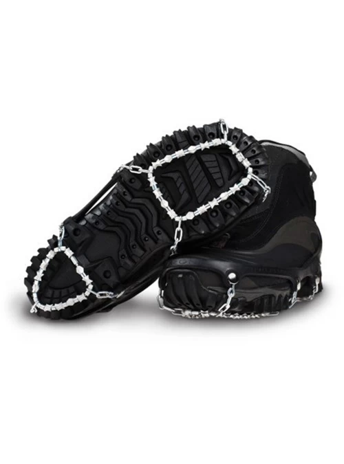 Aggressive traction for all winter walking conditions. Made of case-hardened steel alloy and strung on steel aircraft cable with diamond beads. Biting edges grip in all directions with no ice or snow build-up.
